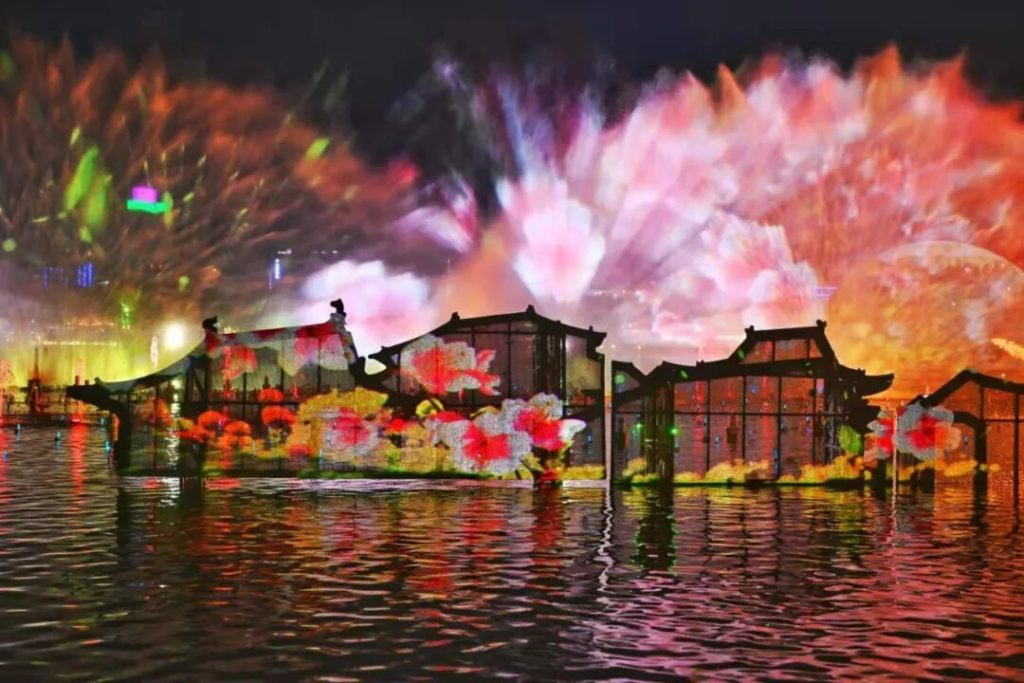 亭台樓閣,拱橋,水榭與流光溢彩的燈光交相輝映,美而不俗。
