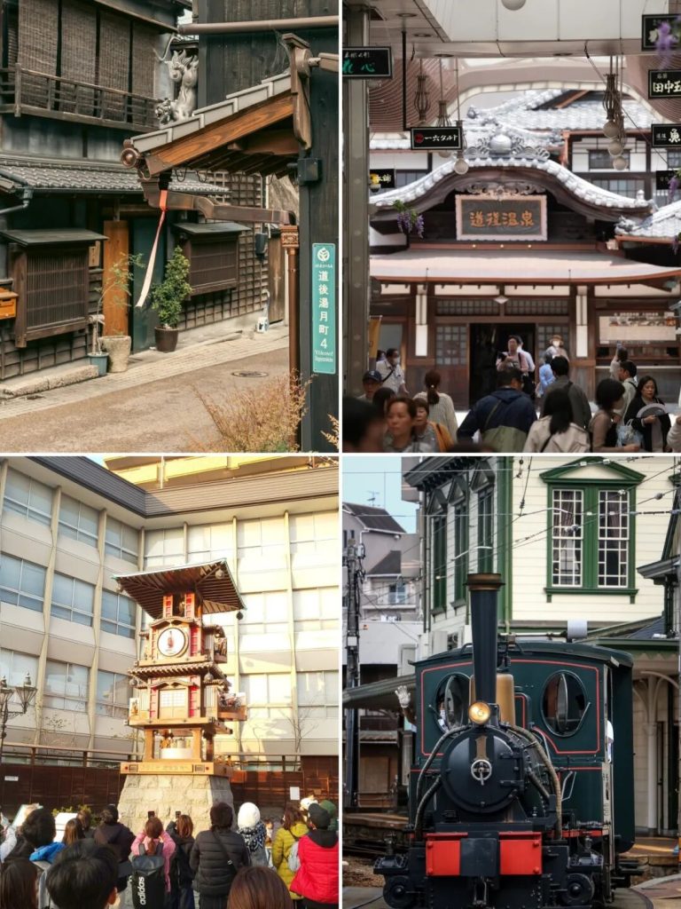 道後溫泉本館→湯神社→伊佐爾波神社→湯築城跡(登頂可以眺望松山城)→道後溫泉地鐵站&星巴克→少爺列車→少爺機關鍾欣賞整點表演→道後商店街購物饗美食→道後溫泉本館
