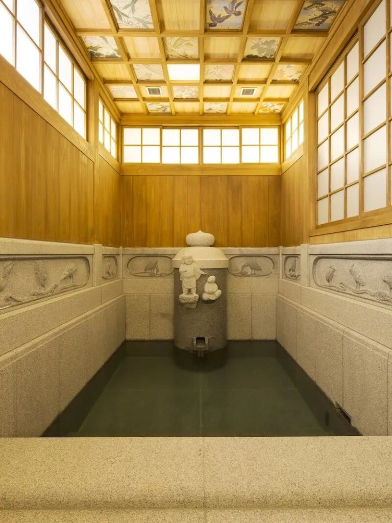 大浴場內部古色古香,還有在其他地方並不常見的「寢風呂」,讓住客可以躺著泡溫泉,感受三千年古湯的魅力。