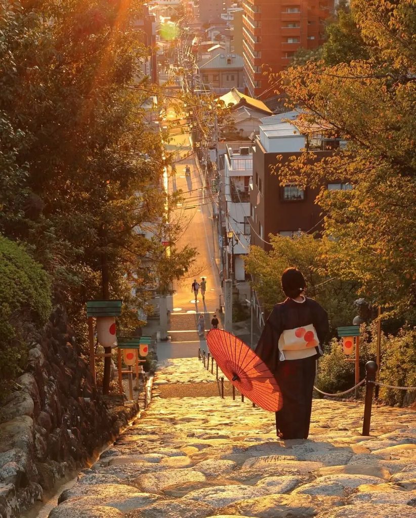 沿著石刻台階緩緩拾級而上,136格的台階石路,仿佛一步步走回了幕府時代。