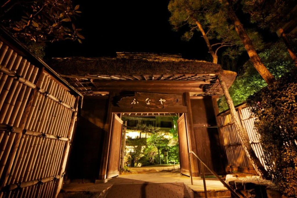 三層的日式木造建築,神似宮崎駿《千與千尋》中湯屋原型,古樸典雅的外觀讓無數動漫迷趨之若鶩。