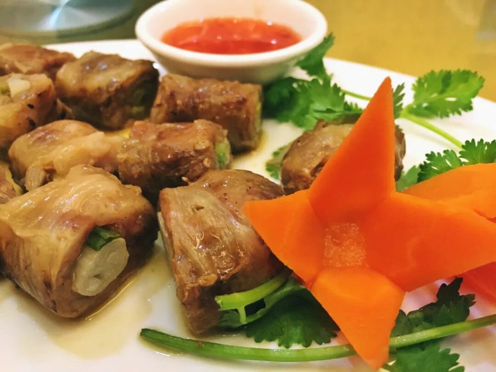 燒腱靈主要食材是鮮豬腿肉、香蔥,加入五香、料酒、白糖等佐料調味,外面裹上一層成肉管形狀,在炭火上慢慢烤熟,吃起來香脆鮮美,肉香醉人。