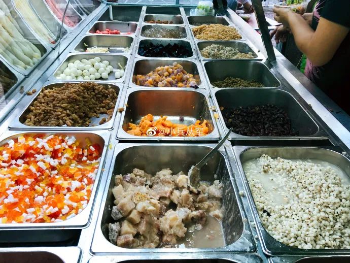 夏天在東山島解暑,除了冰棍還有冷飲!西瓜、石花、涼粉、芋頭......再蓋上厚厚的冰沙,吃起來冰爽快樂極了~還可以自己選擇加甜湯,那就是甜湯的吃法了。