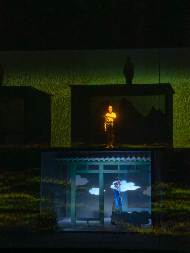 演出以六個線索人物為故事脈絡,通過五個典型場景重現橫跨千年的曆史故事。觀眾可以與張騫、索靖、王維等曆史人物“對話”,感受他們的喜怒哀樂。通過光影與演員的肢體語言,引發對文化傳承的思考。