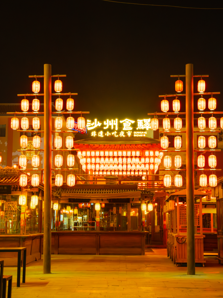 📍敦煌市沙洲夜市內這裏真的是敦煌最好吃的一條街了,集結了所有的特色美食。紅運羊頭、李廣記杏皮茶、漠北烤魚、胡羊悶餅、沙蔥牛肉餅、甜胚冰豆花、河西爆肚、烏孫手抓飯,閉著眼睛排隊點就對了。
