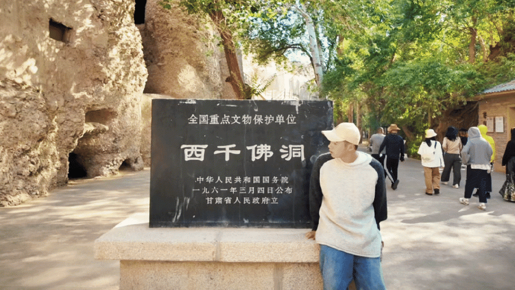 西千佛洞的遊客比較少,可以參觀4個洞窟,參觀方式和莫高窟和榆林窟一樣,由講解員帶領著進入洞窟參觀,不能拍攝錄像。