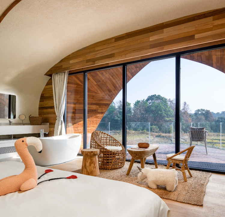 問舍湖東,尋嶼深處。東山湖營地位於仙女湖七夕文化旅遊度假區環湖路花園村,距仙女湖高速路口車程15分鍾,總面積約9000平方米,是江西首家擁有三角木屋、庭院帳篷、地中海融合餐廳、動力沖浪等精致輕奢露營基地。