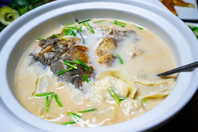 如果用最簡單的語言來形容仙女湖魚鮮,尊重食材無疑是對它本質最誠摯的稱贊。魚頭燉餃子是仙女湖一道傳統魚鮮,有補血益氣、健脾養肝之效。