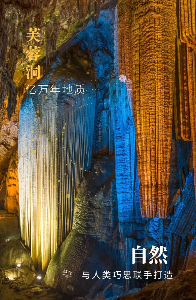 芙蓉洞:世界自然遺產,中國4A級旅遊景區,洞內鍾乳石林立,形態各異,色彩斑斕。