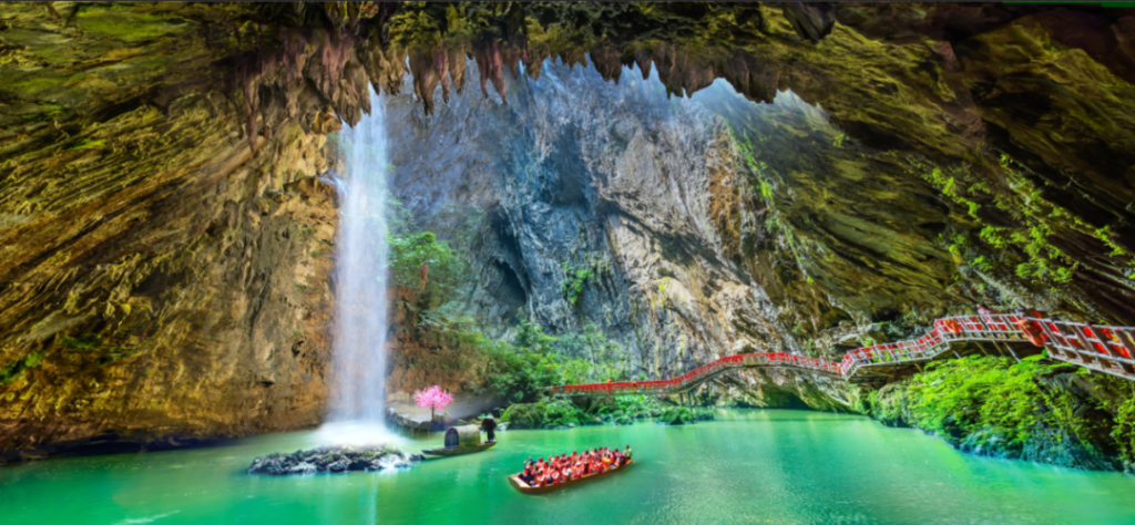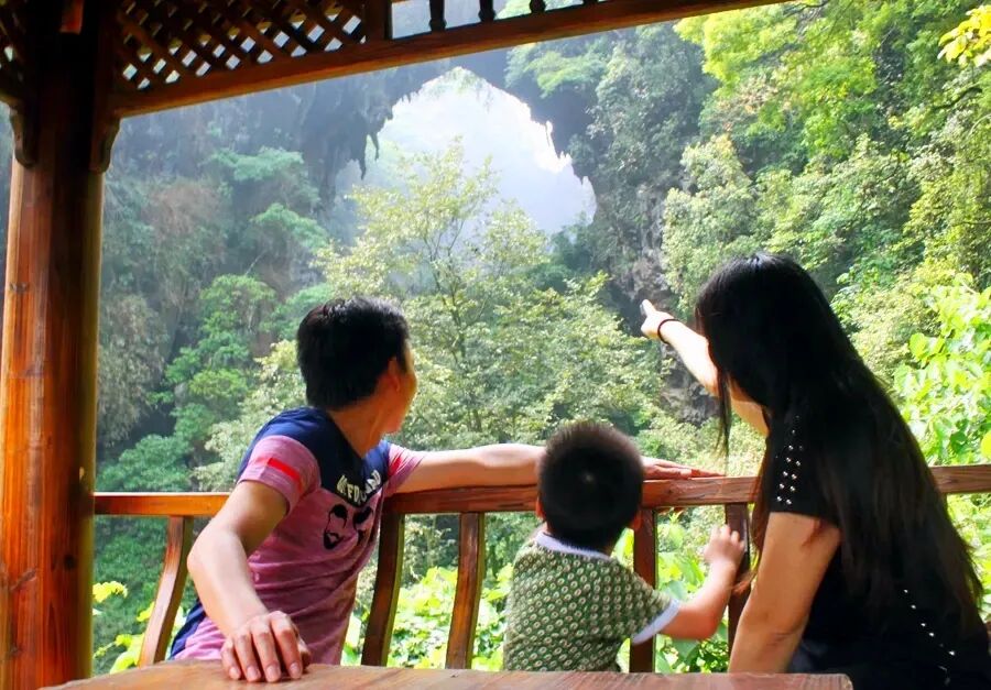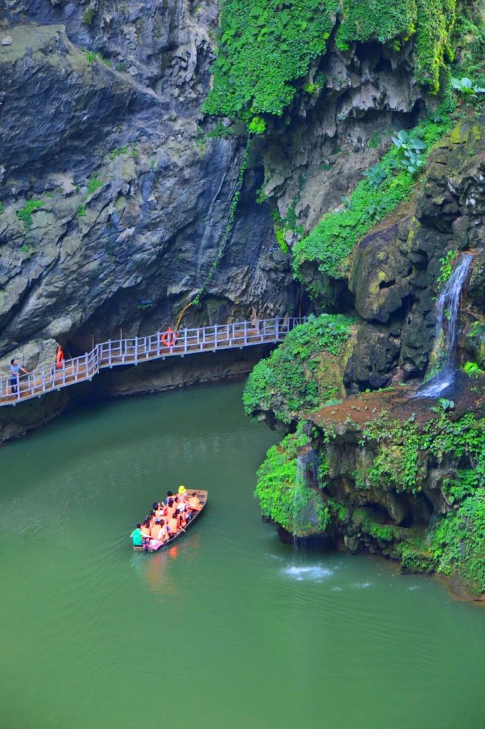 線路推薦一:文化長廊→穿天懸空木棧道→龍舌滴水→寶洞靈菇→觀音賜福→獅子滾球→靈龜獻壽→華南第一天坑→天坑舊屋場遺址→會仙亭→石不語→萬綠福島→姻緣橋→蓮花寶座→仙境天瀑→二重天→溶洞懸空鐵索棧道→洞天飛翔→青雲橋→翠竹林(民俗文化街)→竹林大舞台→回程碼頭