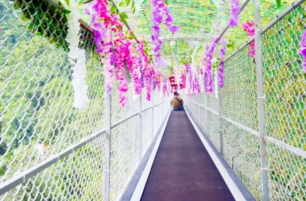 耗巨資由國外頂級設計團隊鼎力打造,“亞洲首創-溶洞懸空鐵索棧道”。懸於空洞內絕壁之上,全長30米、寬2米,高達近百米,俯瞰全洞,驚險刺激。