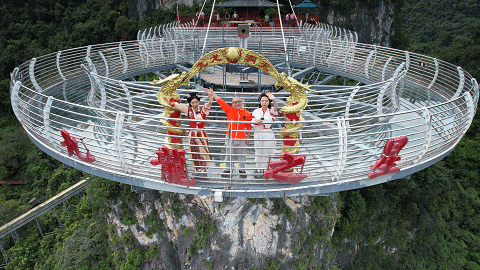 走完九龍之星玻璃觀景台,絕對不可以錯過玻璃滑道。從垂直高度228米安全滑下,沿途峰林美景讓人目不暇接。