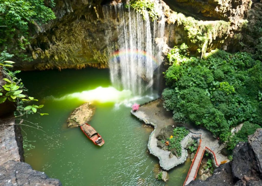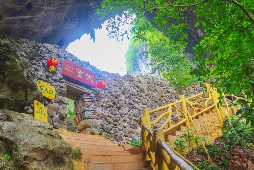 華南地區最大的天坑,坑內具有億萬年曆史的鍾乳石,形態各異、姿態萬千。坑內水、林、光、石的完美結合,清、幽、靜、奇的獨特美景,仿若人間仙境。