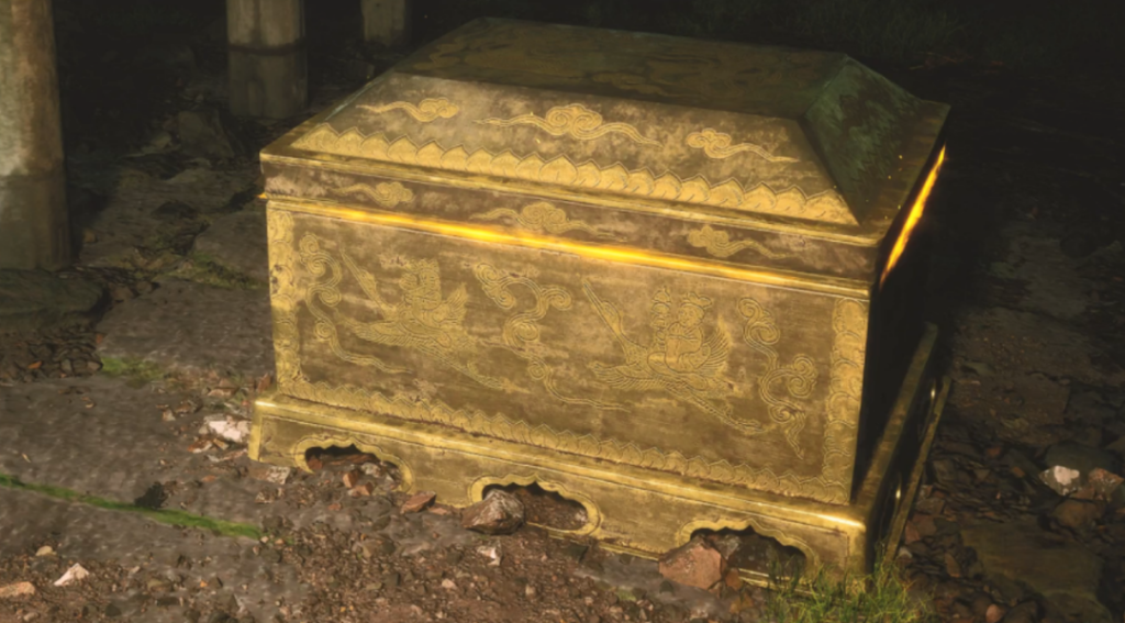 通體呈長方體,由蓋、羅、屜、羅架、器座組成,同樣是《黑神話:悟空》中出現的寶箱之一。
