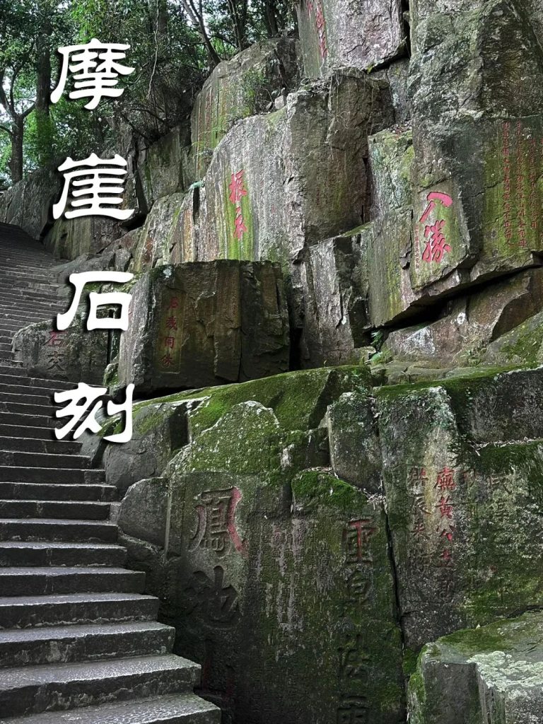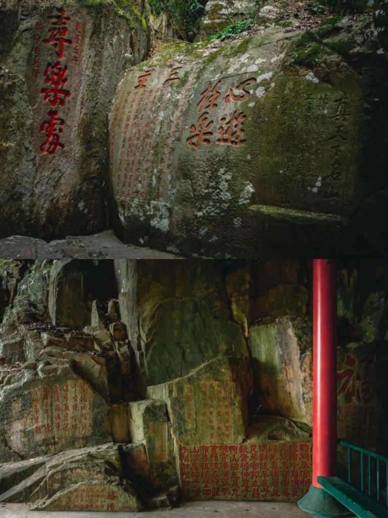 據統計,文人墨客在絕頂峰、靈源洞、白雲洞、舍利窟、達摩十八景等處,留下600多段石刻,上起北宋,下迄當代,前後延續近千年,字體篆、隸、行草、楷俱全,堪稱東南碑林,亦是全國重點文物保護單位。