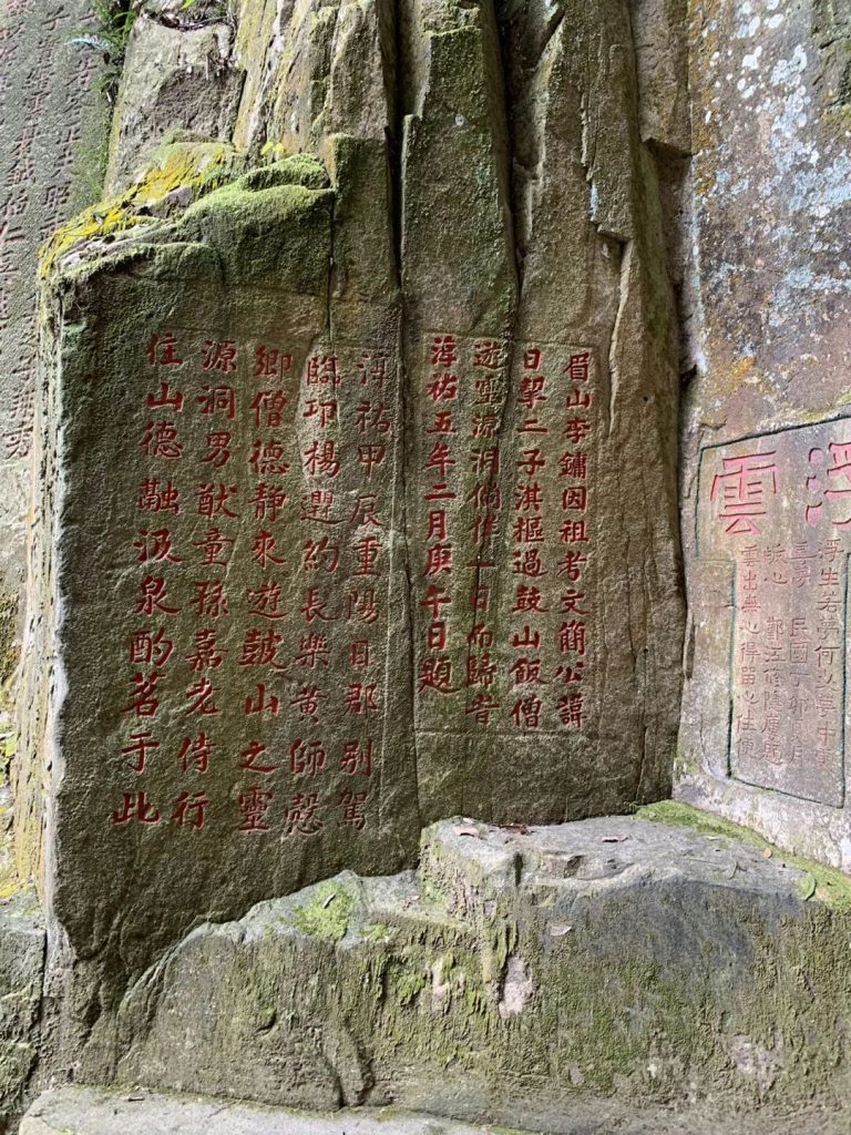 身處密林石階中歇息時,抬頭看看曆經千年風雨後留存於世的石刻題字,欣賞古人書法的精美,感歎中華文化的源遠流長,不失為一種身心靈“如沐春風”的洗禮。