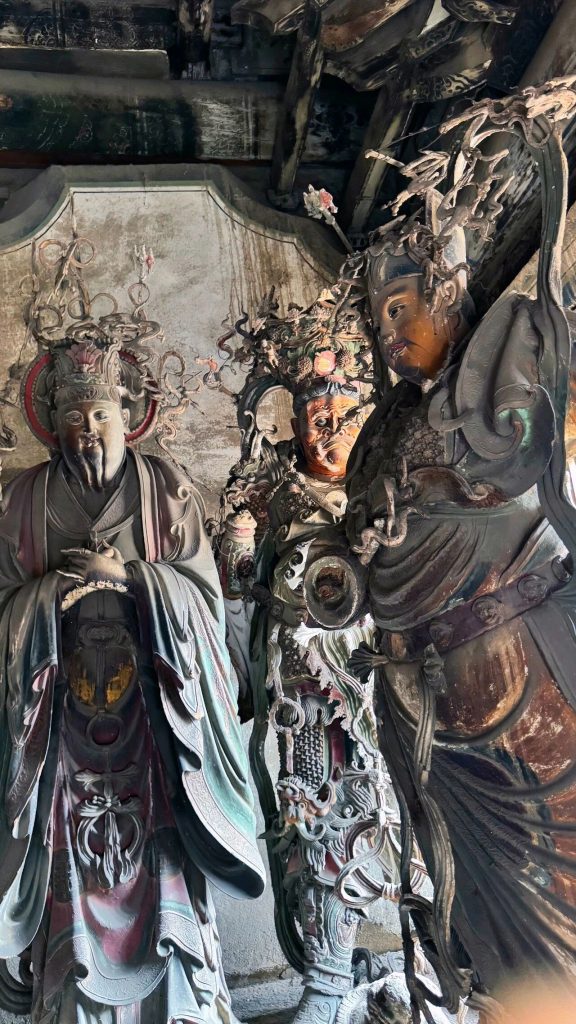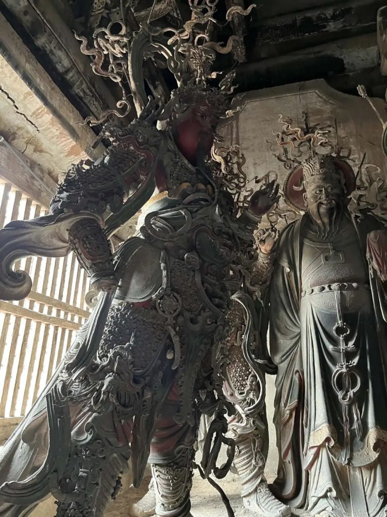 高平自古就是煤鐵之鄉,對鐵絲的運用產生了別的地方沒有的藝術效果。殿內所有的塑像都是木骨泥胎,以木為骨,泥為身,通過在胎內采用鐵絲進行輔助造型,使之弧度更大、線條更流暢,看起來更加生動逼真,富於層次感和空間感。