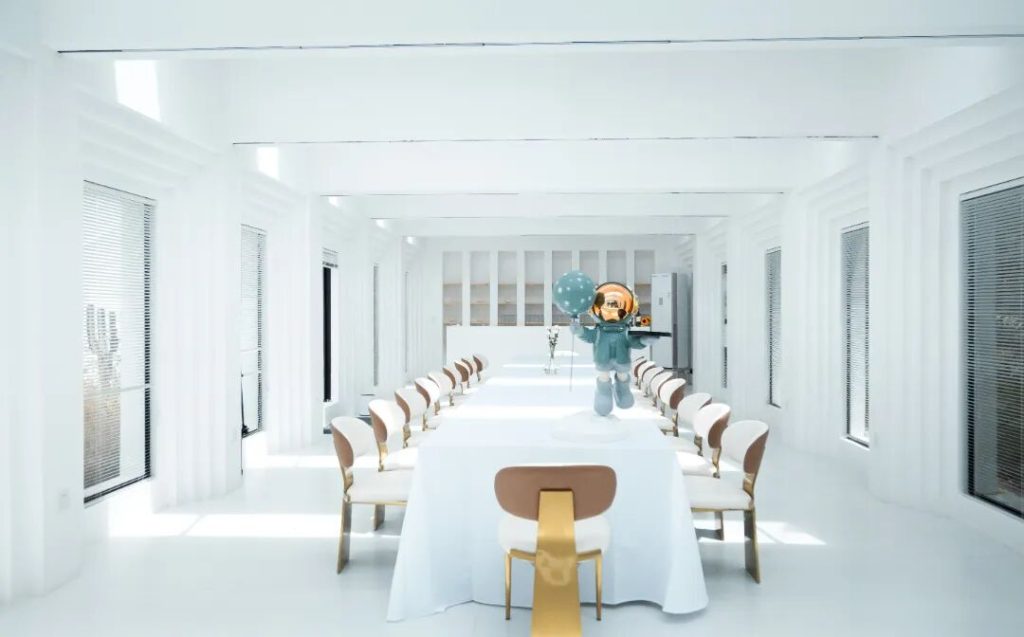 在Ouyear Space,享受精致的愜意生活,一頓美味的西餐,一杯高顏值飲品,便可度過一個悠閑的午後,從門口尋跡而入,最吸引眼球的即是這一抹清新的藍,庭院中一個露天的泳池,漂浮著一艘透明的小船,很適合拍照,側面是一個書吧和咖啡空間,目前還在不斷地完善中,而在它的後方則是一個下層餐廳,餐食主要是以西餐為主,裏面種滿各種綠色鮮活的植物,此區域平日裏還會舉辦一些主題活動,比如芳香調理等活動,在餐廳的旁邊是一間宴會廳進入其中,會感受到非常幹淨而純粹的美,極簡設計中盡顯高級感