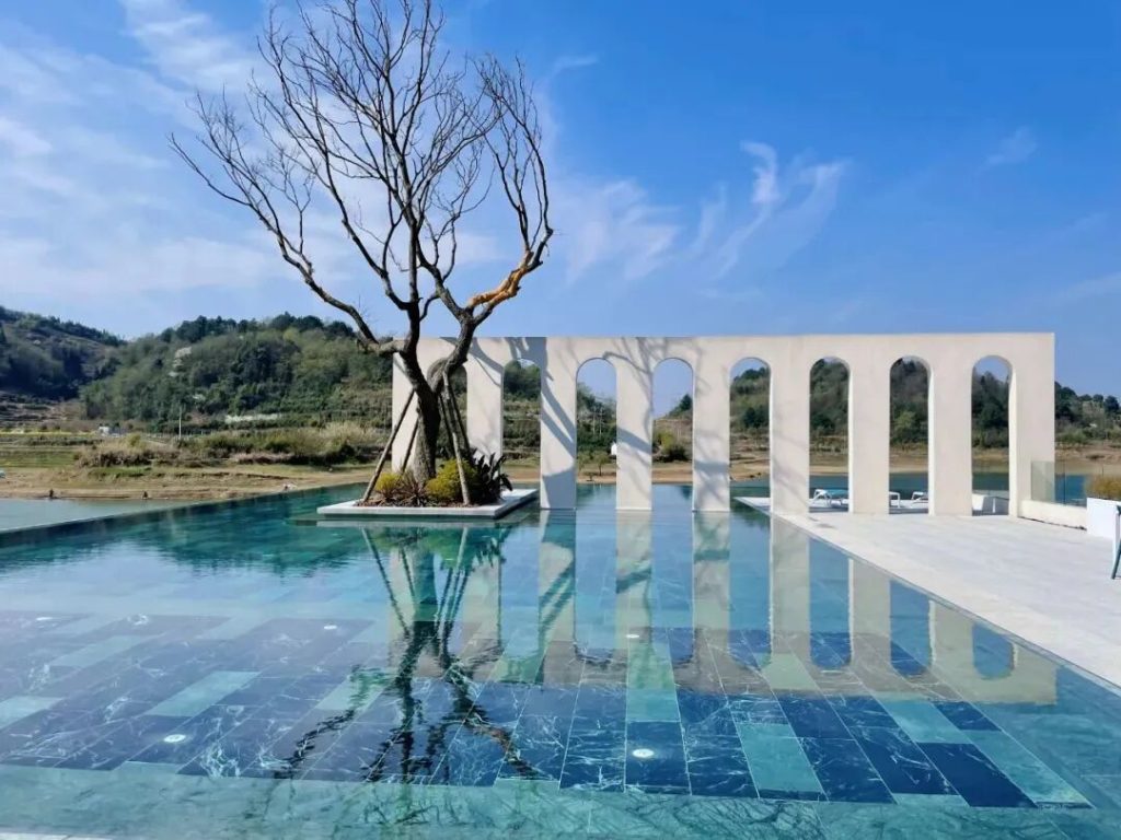 去年秋天,美麗的紅楓湖畔,迎來了一家藝術感十足的民宿「裏查裏諾」,設計感、美感、高級感兼具,白牆青黛,靜謐迷人,民宿將彝族風情與北歐設計相融合,仔細觀察,用心發現,每一處角度皆是風景,每一處細節都充滿設計,既有自然原生的生活意趣,也有現代時尚的設計感,清澈見底的露天泳池,最是讓人喜歡,歐式的拱形門立於池水中間,盡顯大氣與浪漫,而在無邊泳池的對面,是一池碧波蕩漾的湖水,在泳池邊,臨風眺望,欣賞湖光山色的美景,獨特的外觀設計,富有濃鬱的地中海風情,更加別具一格,民宿共有29個房間,房間簡約且精致,一桌一椅,一床一褥,讓你以最舒服的姿勢褪去疲憊。