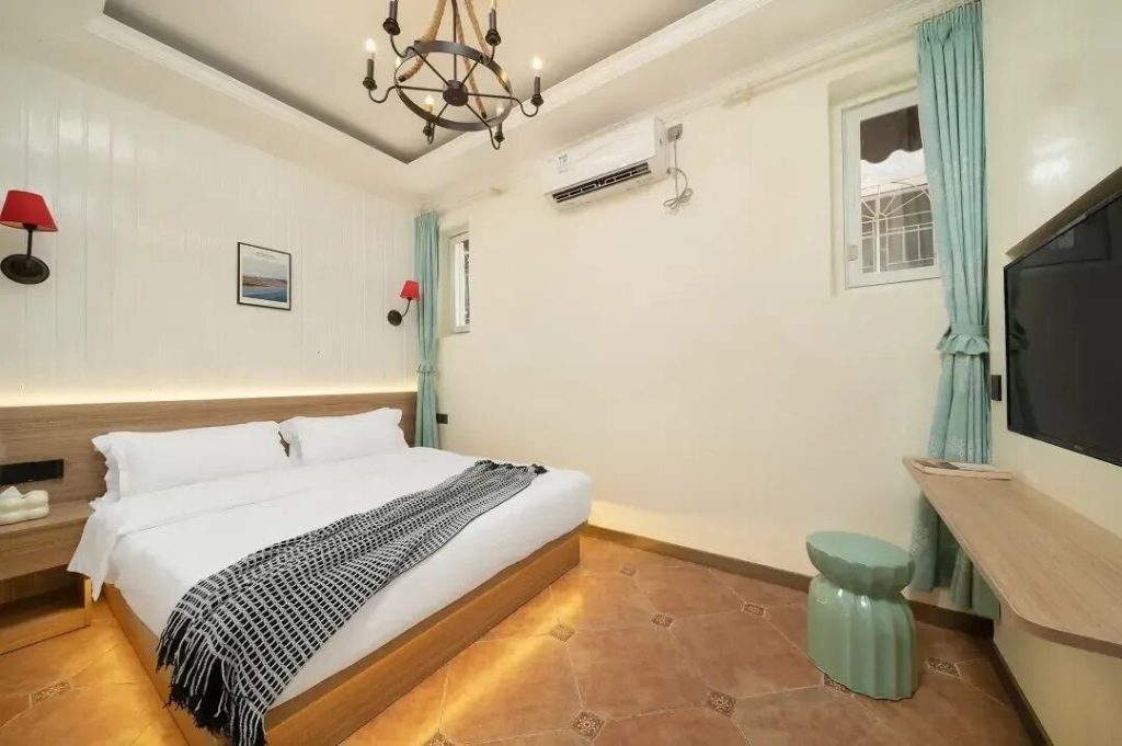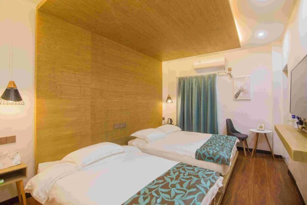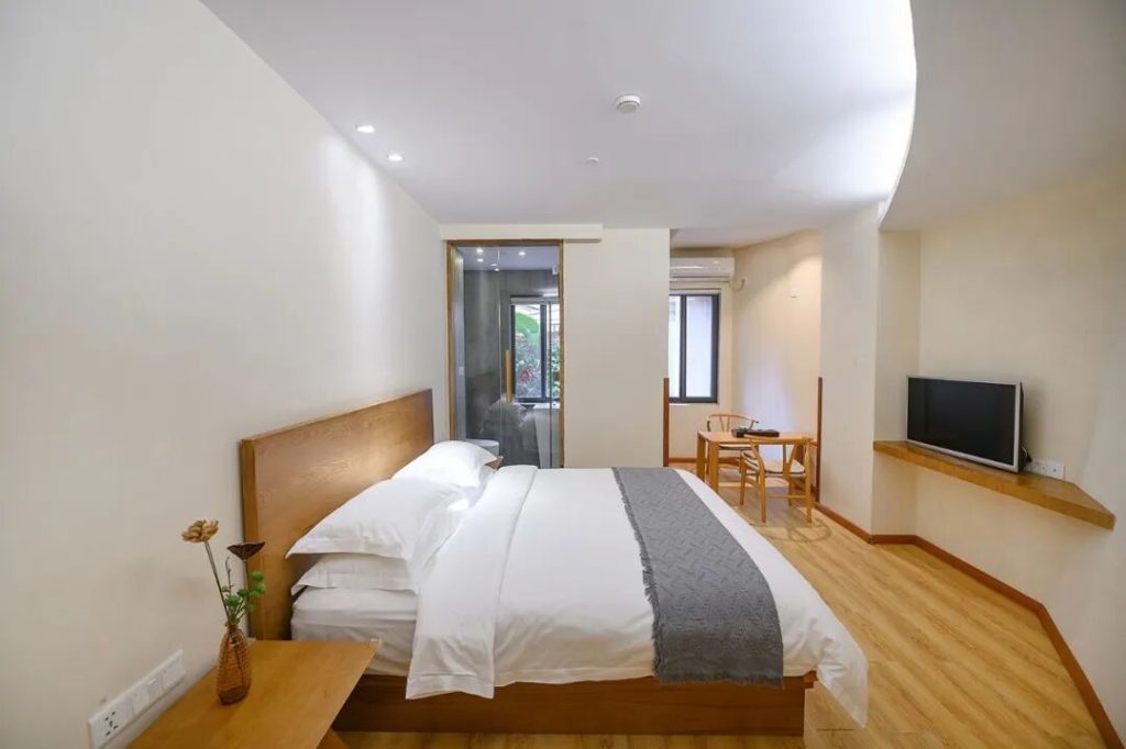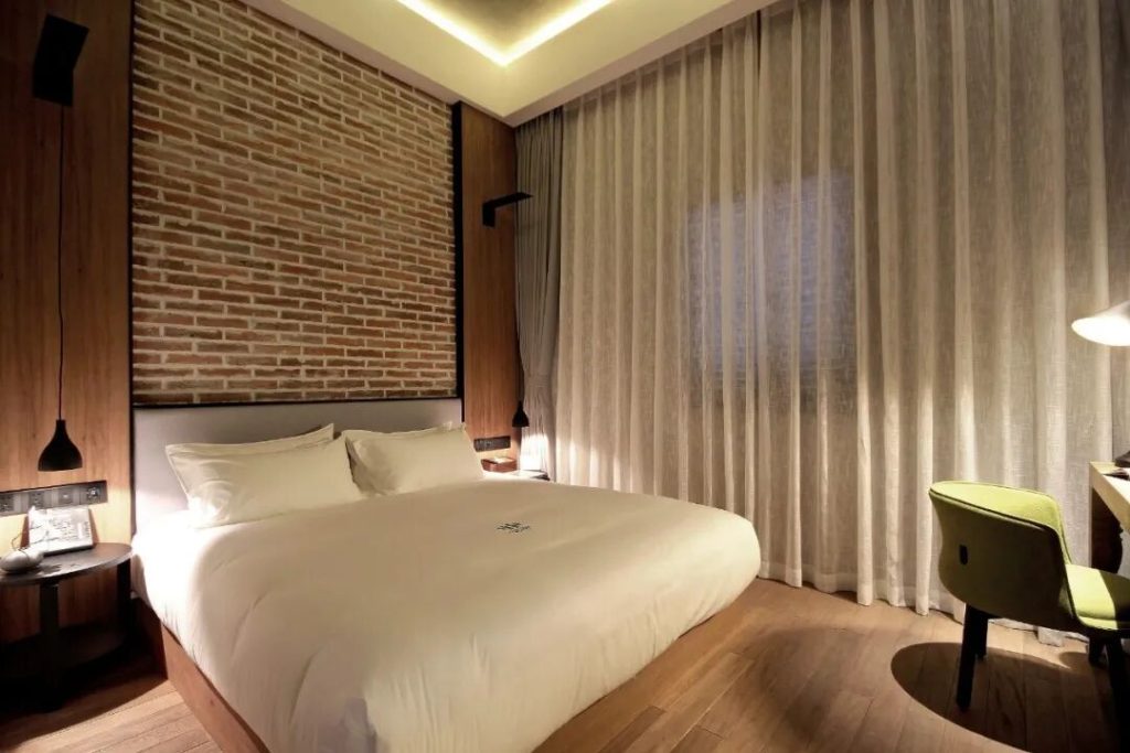 看多了色彩跳躍的“網紅風”,帶一點灰棕的色調反而讓人倍感松弛。這裏的房間裝潢采用北歐極簡風格,隨手一拍自帶高級感。所有客房均配備有投影儀,新風空調系統,智能浴霸,隔音門窗,特級乳膠床墊等設施,予您貼心細致的入住體驗。