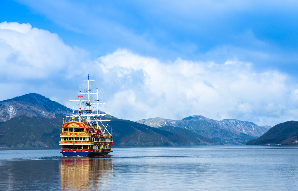 蘆之湖隱藏在箱根的中心位置。它是 3,000 年前箱根山的火山爆發之後,形成的火山湖。如果天氣晴朗,從蘆之湖東南岸看到的富士山。搭乘觀光船,探索並欣賞湖景。由箱根海賊船服務運營的海盜船形小船將為您的體驗帶來更多樂趣,蘆之湖因此而聞名,並且成為了箱根的必遊景點。