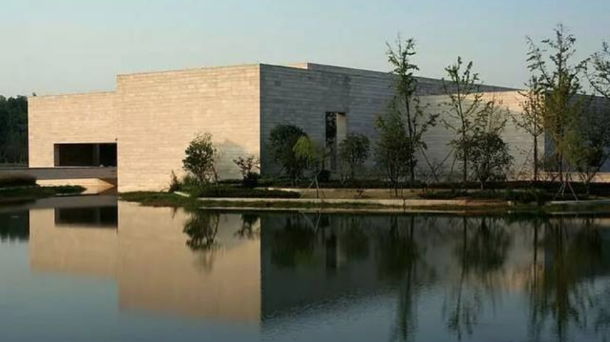 良渚博物院由英國著名建築設計師大衛·奇普菲爾德設計,黃洞石啟程的牆面遠遠看起來也似一方璞玉,呼應了遙遠的良渚玉器文明。