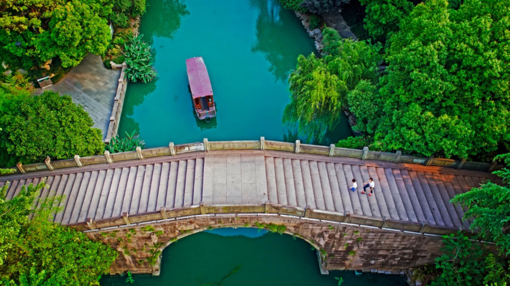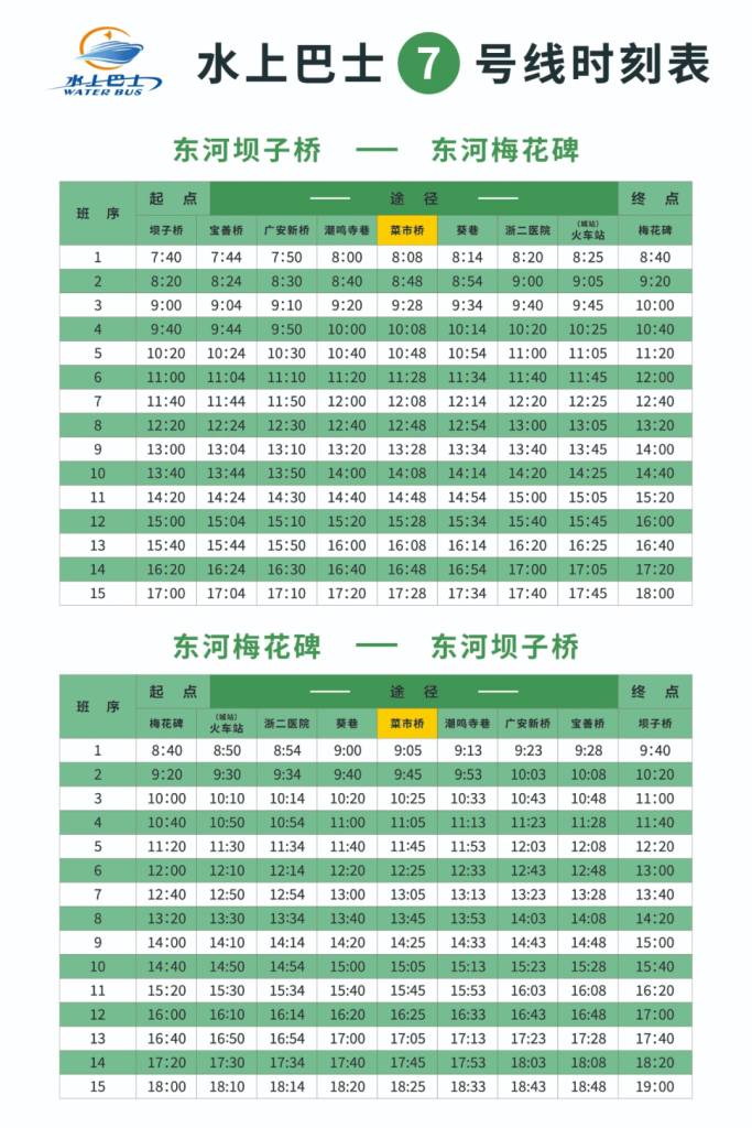 如果說乘船是遊西湖的最佳方式,那麼由運河的最佳體驗則是坐水上巴士,而7號線(東河線)被稱為最美路段,采用的是小漕舫船,沿途會穿過一座座古橋,近距離感受小橋流水人家的江南風情。