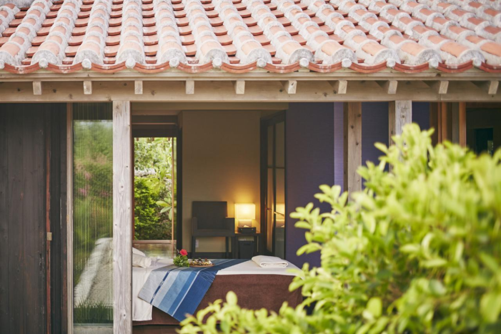 其次,酒店神奇之處還在於錯落有致的別墅建築,猶如與自然相輔相成的天然建築。當你慢慢踱步至見晴台時,便能夠遠眺虹夕諾雅·竹富島的部落屋群全景,飽覽與朵朵綠色樹叢相間的集落自然美景。