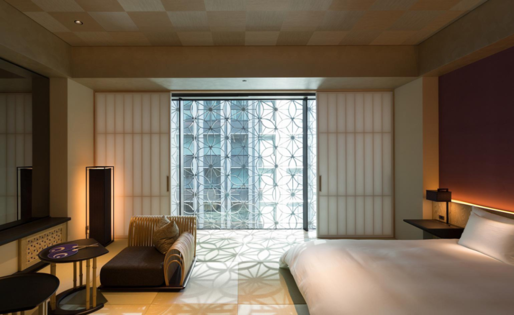 酒店內至今保留著在現在日常生活中很難接觸到的京唐紙、格子、土塗壁、日本瓦等傳統工匠技藝。數寄屋造風格的房間裏,使用著現在已經買不到的材料。