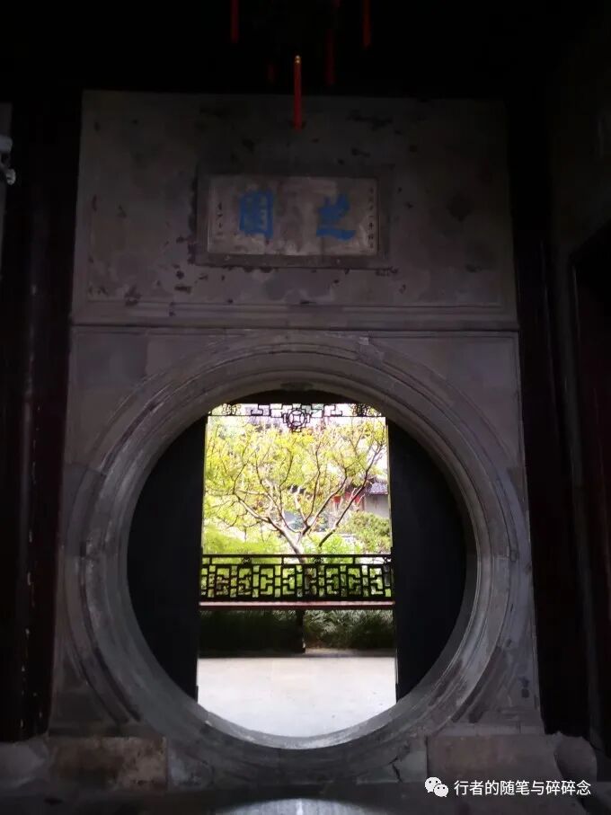 鴛鴦廳南是花園,三邊不高的雲牆隔出一天井,相對二雲牆各有一方洞門。
