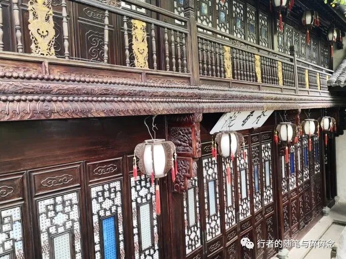 鴛鴦廳,是當年胡雪巖其中一個姨太太所擁有。坐東朝西,面寬五開間,平面分割成三廳,為南、北廳布局對稱,而裝修、陳設各不相同的建築形式,故有“鴛鴦”之稱。鴛鴦廳的特點是可隨季節變化而選擇位置,面南者冬有和煦的陽光,宜冬春待客,朝北者涼風陣陣,宜夏秋起居,此種布置使各廳獨立成局,如今已變成賣字題詩的地方(故沒拍照)。