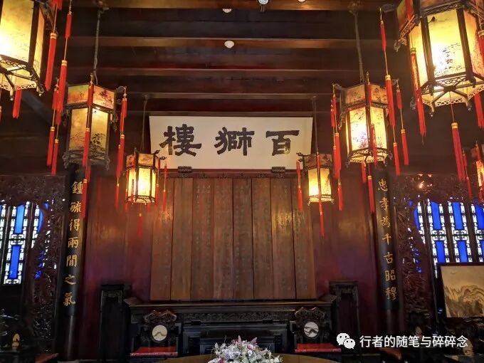 百獅樓是胡家的正廳,座北朝南,面闊五間,因為有100個紫檀磨成的獅子裝飾欄杆而得名。不過,由於時代的變遷,這些紫檀磨成的獅子,現在我們已經無法見到。該樓既是待客、迎賓、議事的主要活動場所,又是胡雪巖的母親與正房太太的居住之處,是全宅最重要的建築。