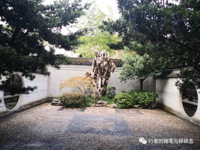 牆壁上精美的漏窗,漏窗是窗洞內有漏空裝飾圖案的窗子,常見於中國的古典園林。一座園林,就像一幅畫,如果沒有漏窗,總覺得缺少了“神”,漏窗恰如畫龍點睛之筆,讓整座園林一下子就有了生氣,透過漏窗,便可以窺見整座園林的靈魂。