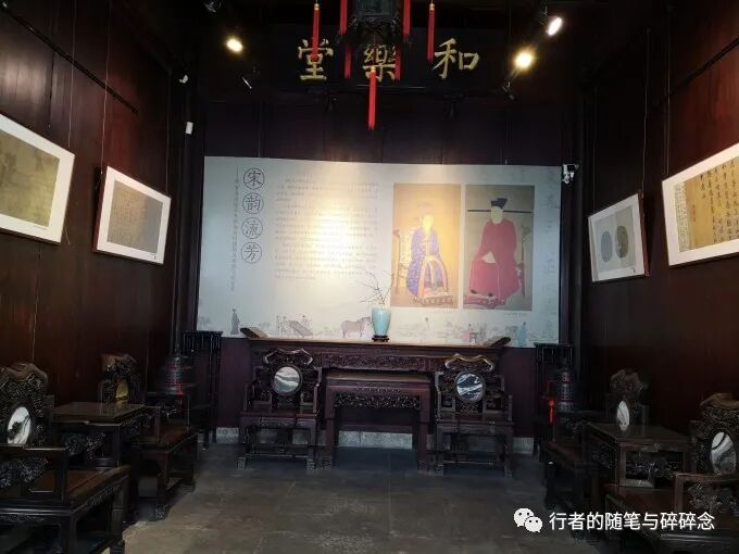 和樂堂一樓原是胡雪巖的書房和公用的地方,有琴房、有畫室、有棋社,是專供姨太休閑娛樂的地方。這一幅大約是胡雪巖50歲時的畫像,胡雪巖的官服上繡著錦雞,一品為仙鶴,二品是錦雞,三品是孔雀,從中可以看出胡雪巖官至二品。這不是他當時畫的,這是他的娣孫胡耀光,上海籍的一名著名畫家,他是根據他的想象和揣測,以及他見到的一些前輩人物,這個的可信度還是蠻高的。
