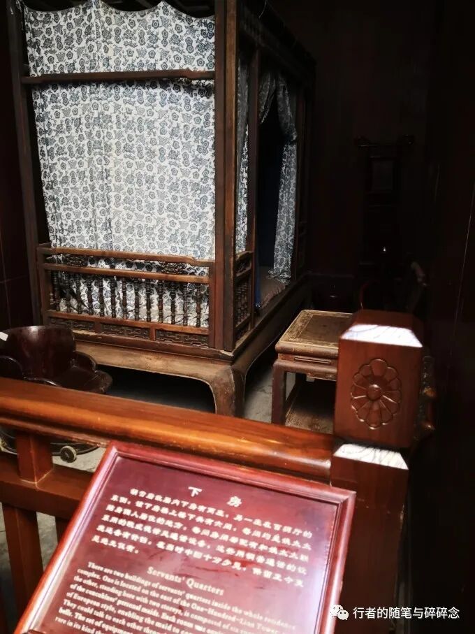 宅子不算大,但是整個建築布局緊湊,構思精巧,居室與園林交融,建築材料可媲美皇帝故宮,可謂無材不珍。不好意思的說,我竟然迷路了N次……房屋層層疊疊,如同迷宮,豪門深似海的感覺……除去價值連城的物料(楠木、杏木)、雕刻、珍藏等等,我最喜歡的還是它的取名,如影憐院、晴雨亭、禦風樓、洗秋堂、幽篁等都取自古詩詞,怎一個美字了得!
