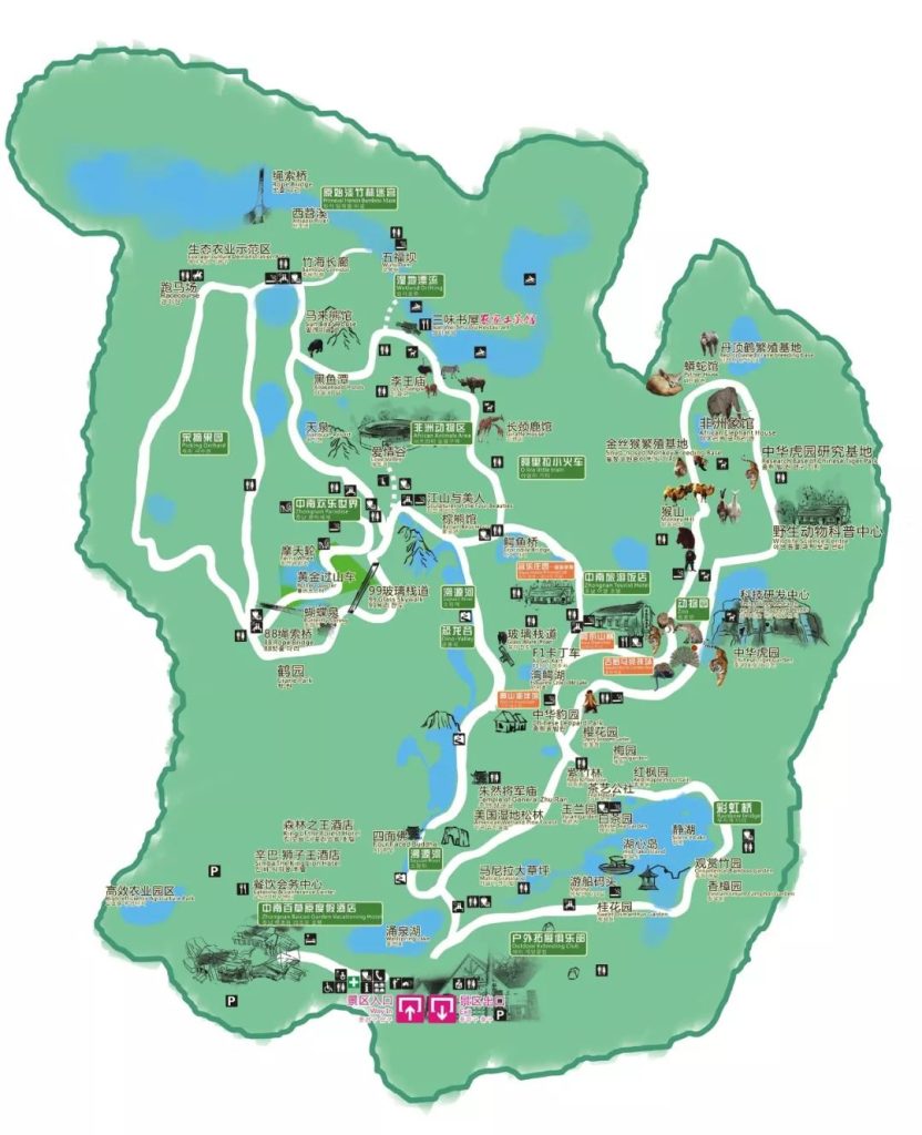 景點推薦: 馬尼拉大草坪、靜湖、 “三園”觀賞區、原始淡竹林迷宮、采摘果園、野生動物馴養繁殖區、末日世界動物標本館、非洲動物區、巨蛇陣、F1—卡丁車、橫渡鱷魚橋、中南歡樂世界
