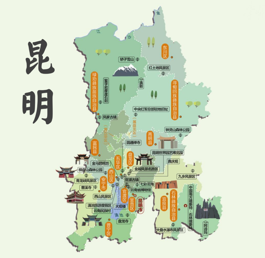 昆明,別稱春城,雲南省省會,地處雲貴高原中部,為山原地貌,由於地處低緯高原而四季如春。