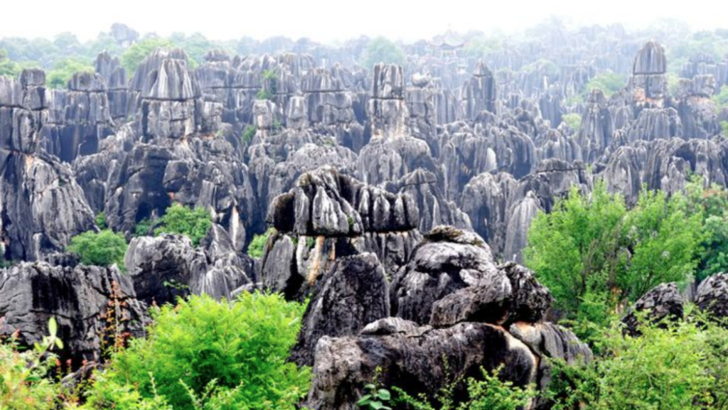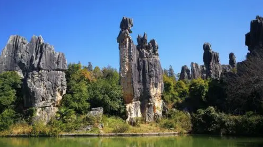 石林風景區,位於昆明的石林彝族自治縣境內,距離昆明市區78公裏,范圍達350平方公裏。