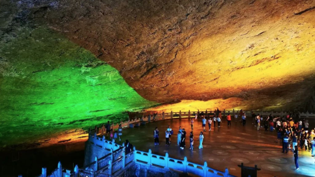 雄獅廳,世界上最大的地下廣場大廳,整個大廳是由一塊巨大的岩石構成,沒有任何一根支柱。廳內南端半敞開洞口處的鍾乳石酷似一頭雄獅,故名雄獅廳。雄獅廳非常大,可以容納上萬人。成龍主演的《神話》就在此拍攝。