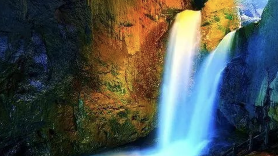 雌雄雙瀑,兩條白色的瀑布從30多米高的懸崖上墜下,這兩條一高一矮、一胖一瘦的地下瀑布,雌雄難辨,因此而得名“雌雄雙瀑”。雌雄瀑布高30米,潭深10餘米,水量大而迅猛,瀑布聲驚天動地,甚是震撼。
