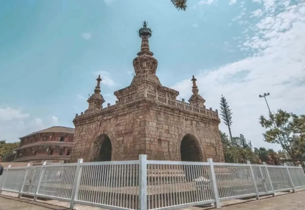 金剛寶座塔:這座塔位於妙湛寺前,塔身雕刻精美,充滿佛教文化氣息。每當陽光照射在塔上,金光閃閃的裝飾更是讓人眼前一亮。這座塔不僅是官渡古鎮的標志,更是中國佛教文化藝術的瑰寶。