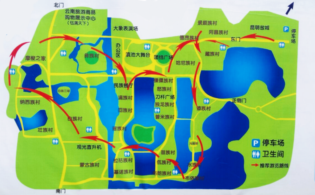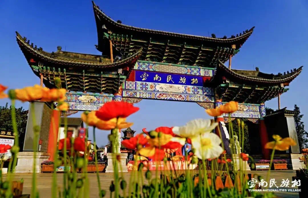 雲南民族村,位於昆明西南郊的滇池之畔,占地面積89公頃。
