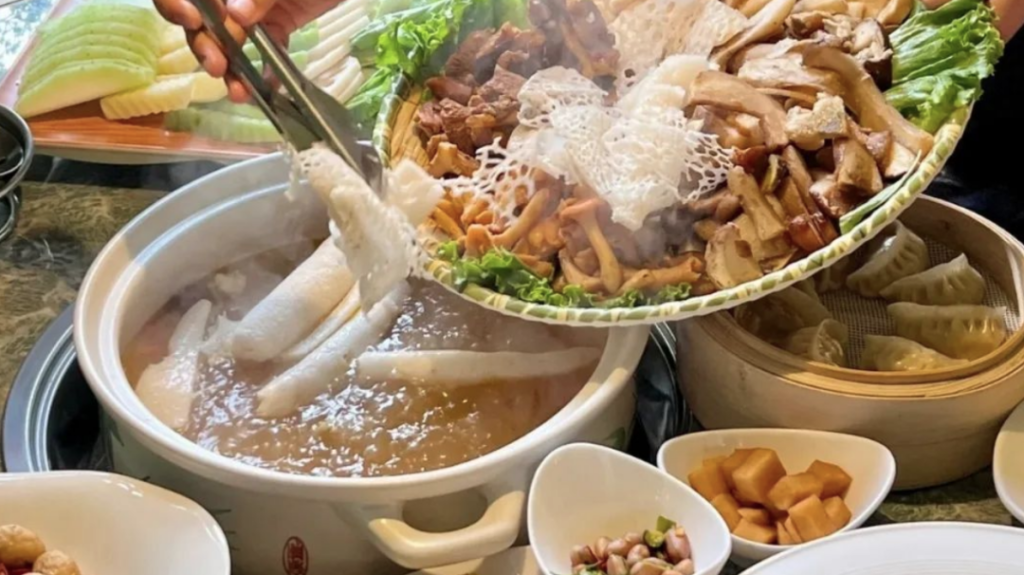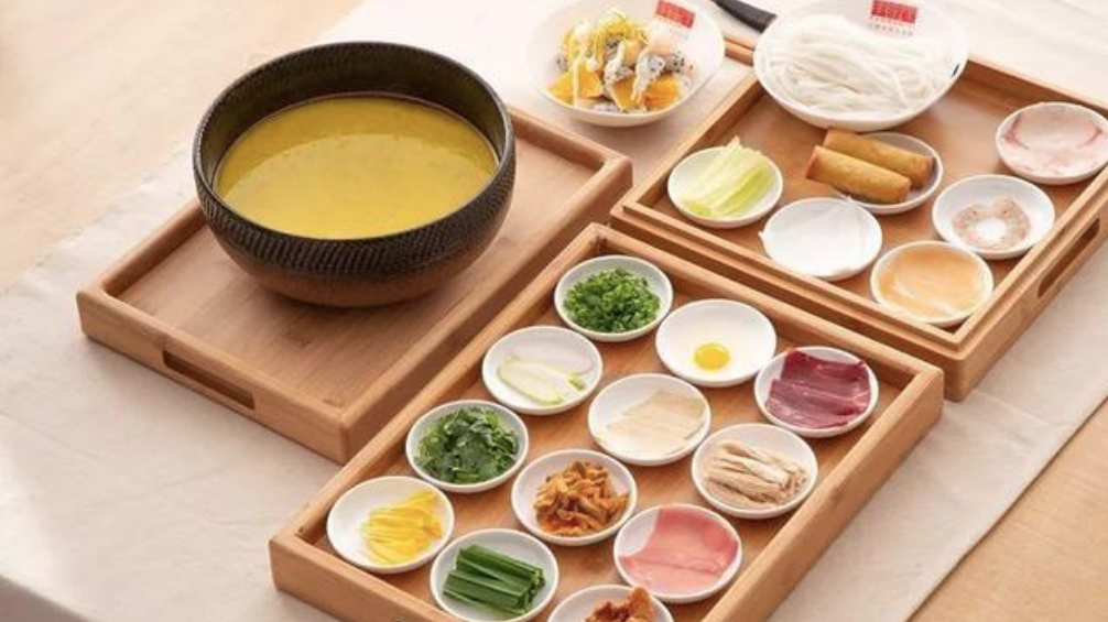 蒙自榴緣居菊花過橋米線:現熬的大骨湯,湯鮮味美,中份15元自選4種帽子。