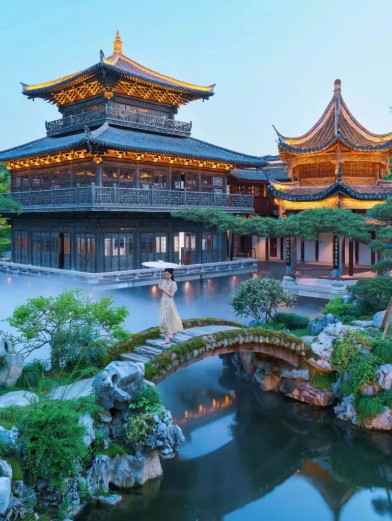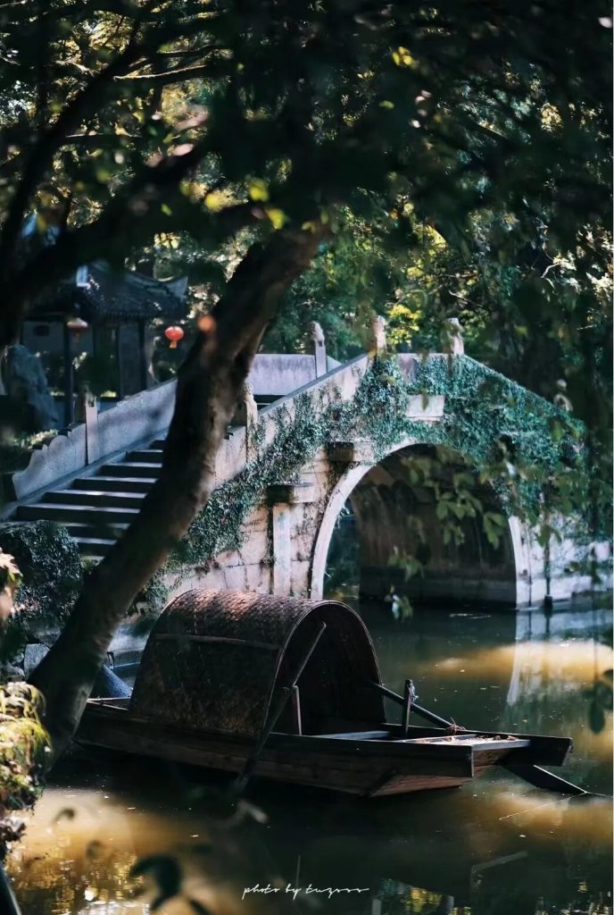 海鹽綺園,這裏不僅是餘華老師曾在采訪中安利的,還是紅樓夢寶釵撲蝶取景地「兩水夾明鏡,雙橋落彩虹」,走入園內樹木參天,小橋流水,亭台樓閣,一眼心動,處處都很出片。