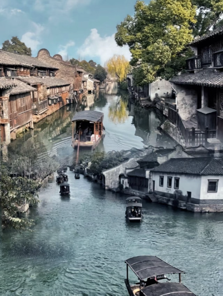 坐上水鄉遊船,漫遊在這座古鎮上,仿佛穿越到了春秋時代的水鄉、唐宋時期的市鎮、明清時代的建築和現代社會的人群中。
