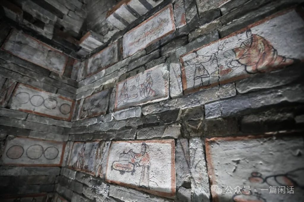 墓葬共出土760餘副磚畫,形式多為一磚一畫、半磚一畫或幾塊磚組成的連環畫。這些磚壁畫色彩鮮豔,風格獨特,畫技巧妙,磚壁畫內容取材於當時的現實生活,有反映農耕、養殖、采桑、宴居、出行、軍事操練、狩獵等內容,是研究魏晉時期西北地區的政治、經濟、文化、軍事、民族、民俗及氣候等的實物資料。其中繪畫方面的內容,在美術領域填補了我國魏晉時期繪畫史上的空白。