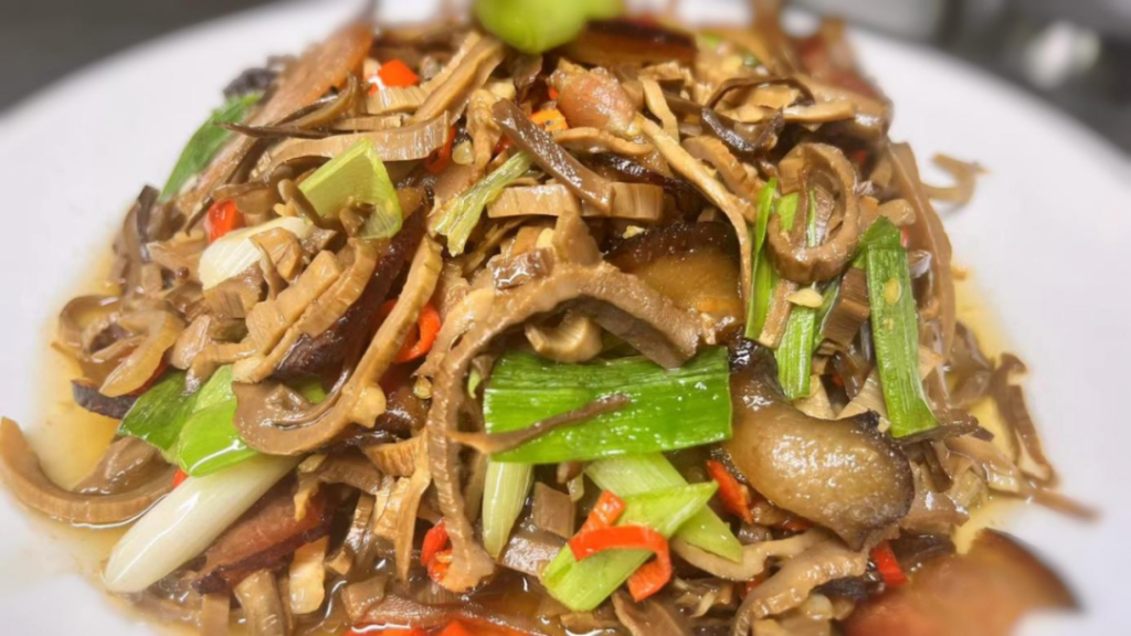 精選井岡山鮮嫩竹筍,經特殊工藝煙熏而成。煙筍色澤黃亮,口感鮮嫩爽脆,帶著淡淡的煙熏香氣。無論是搭配肉類炒制,還是單獨烹飪,都能品嘗到別樣的風味。煙筍還富含多種纖維和維生素,具有清熱解暑、開胃健脾、解膩等功效,被譽為“竹林海參”。