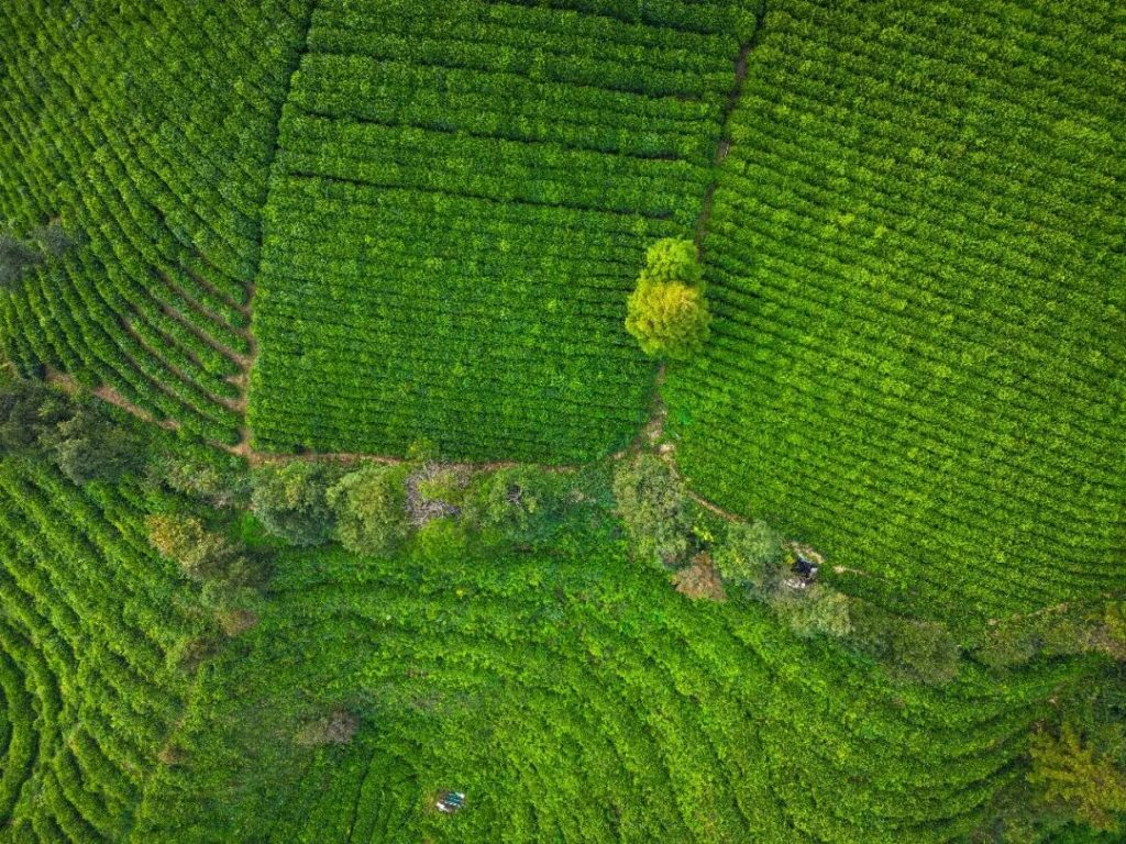 只見徑山雲霧裏,層層疊疊的茶樹青翠欲滴,茶壟似碧浪鋪滿了整個山巒,古寺地黑瓦飛簷就藏在這片蔥鬱茶園的盡頭,清風拂過山崗,禪意順著茶香漫開,浸透時每一片葉子裏。這才是徑山寺獨有的溫柔:禪在寺裏,茶在山間,故事藏在每縷茶香裏……