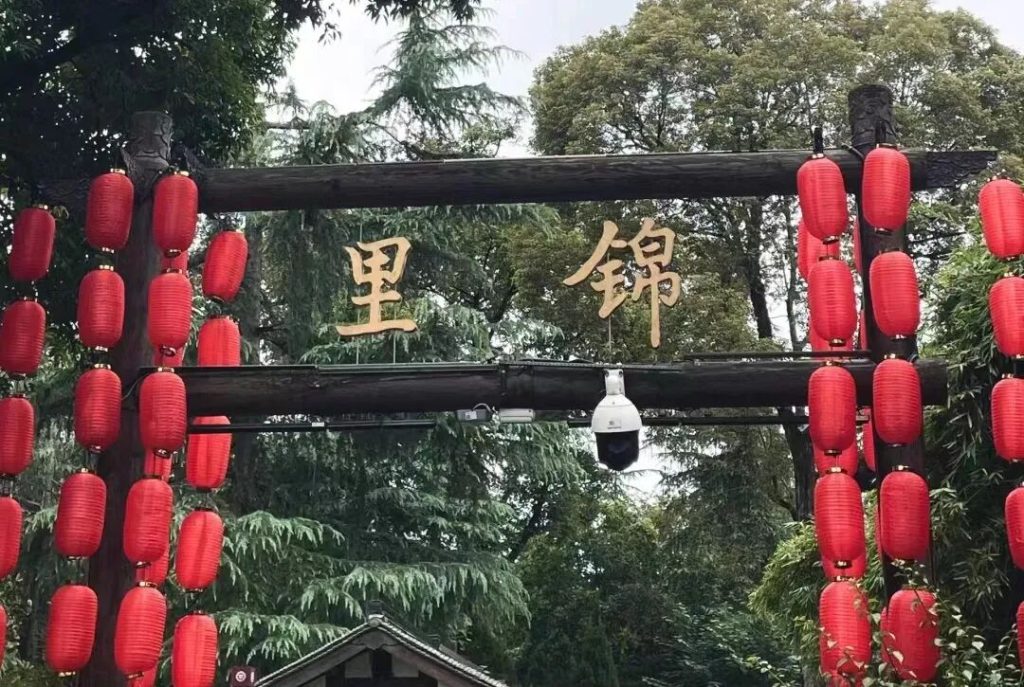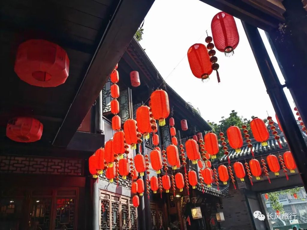 錦裏與武侯祠僅一牆之隔,一踏入這條古街,就看到古色古香的樓閣上掛滿了紅燈籠,格外喜慶。