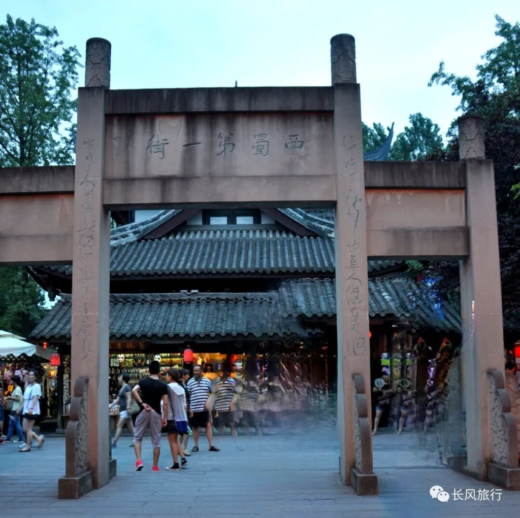 “西蜀第一街”牌坊是錦裏的標志性牌坊,這裏也是錦裏古街較為繁華的區域,茶樓、客棧、戲台、風味小吃、民俗工藝全部彙集在周圍。
